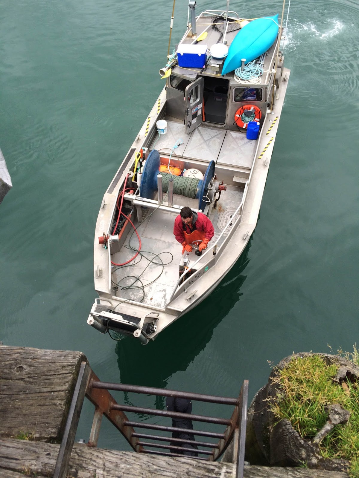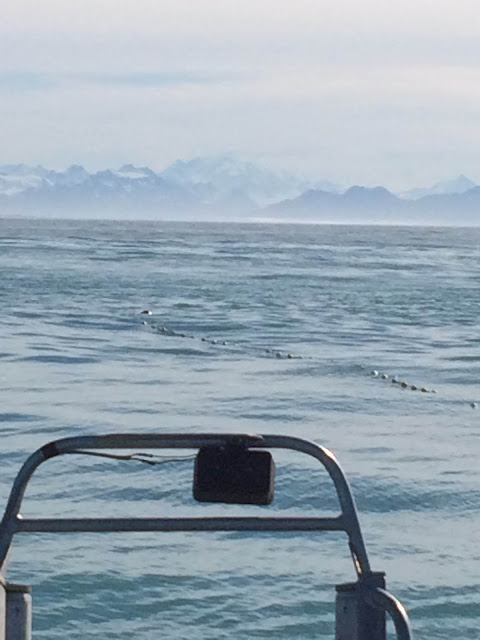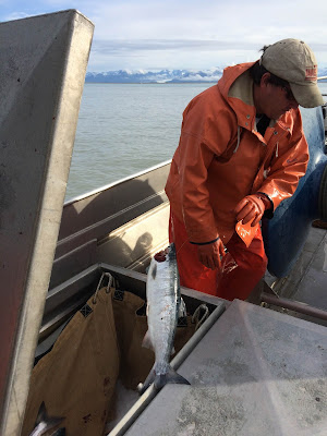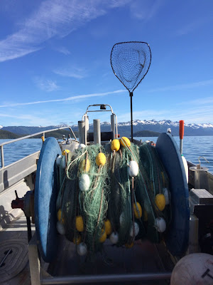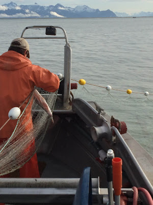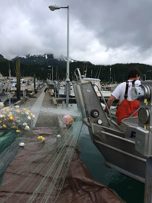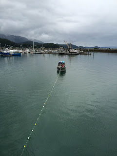 So I decided to do it. I think Aquaman didn't quite believe it. I had gone out fishing with him once, over a decade ago. I spent most of that opener on the Flats in his bunk with a pounding headache, trying not to hurl. The waves were mild, he told me. It was calm, he told me. They didn't feel mild and it didn't look calm. I didn't like the way the sea rolled in under us. I didn't like the loss of control, and I wouldn't surrender. So I just laid down and closed my eyes, mentally fighting with the forces of nature, and eventually it was over. I'd been hesitant to go with him on the seine boat he spent the last two seasons on, but I shouldn't have worried. Seiners fish in Prince William Sound. It is protected and calm and beautiful. The bigger boat offers more stability. After going out with him and the captain and crew, I called it the "gentleman's fishery." It was delightful.
