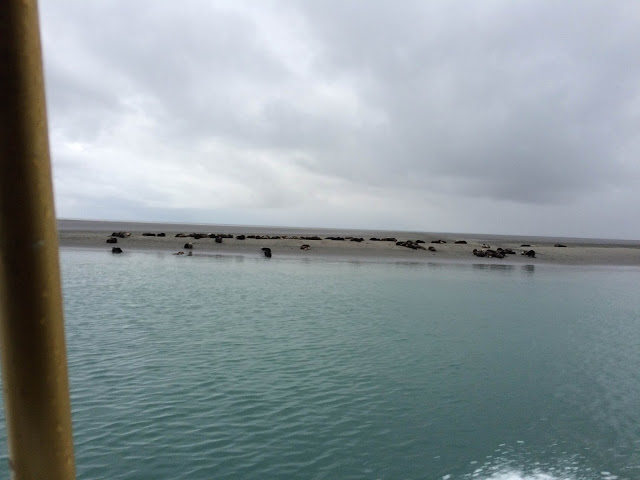 We left the night before fishing opened when the tide was right and headed to Egg Island, where we would anchor for the night. It was rainy. And foggy. It is super loud inside the cabin -- the engine takes up most of the space - and we wore huge headphones to protect our ears. Aquaman sat in his captain's chair. I sat perched on a stack of tool boxes where I could see out the window.