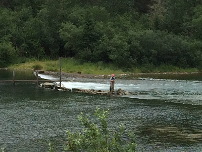 Something seemingly simple, like going fishing, involves him walking along slippery rocks - potentially being thrown off balance. Not to mention the bears who would like to have what is on his hook. Or what if he falls into the cold water? And hurts himself and floats downstream? And he can't get out?