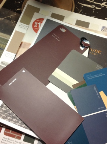 | Paint chips on the hall table. I'm considering which wall to paint maroon. It's a sickness. |